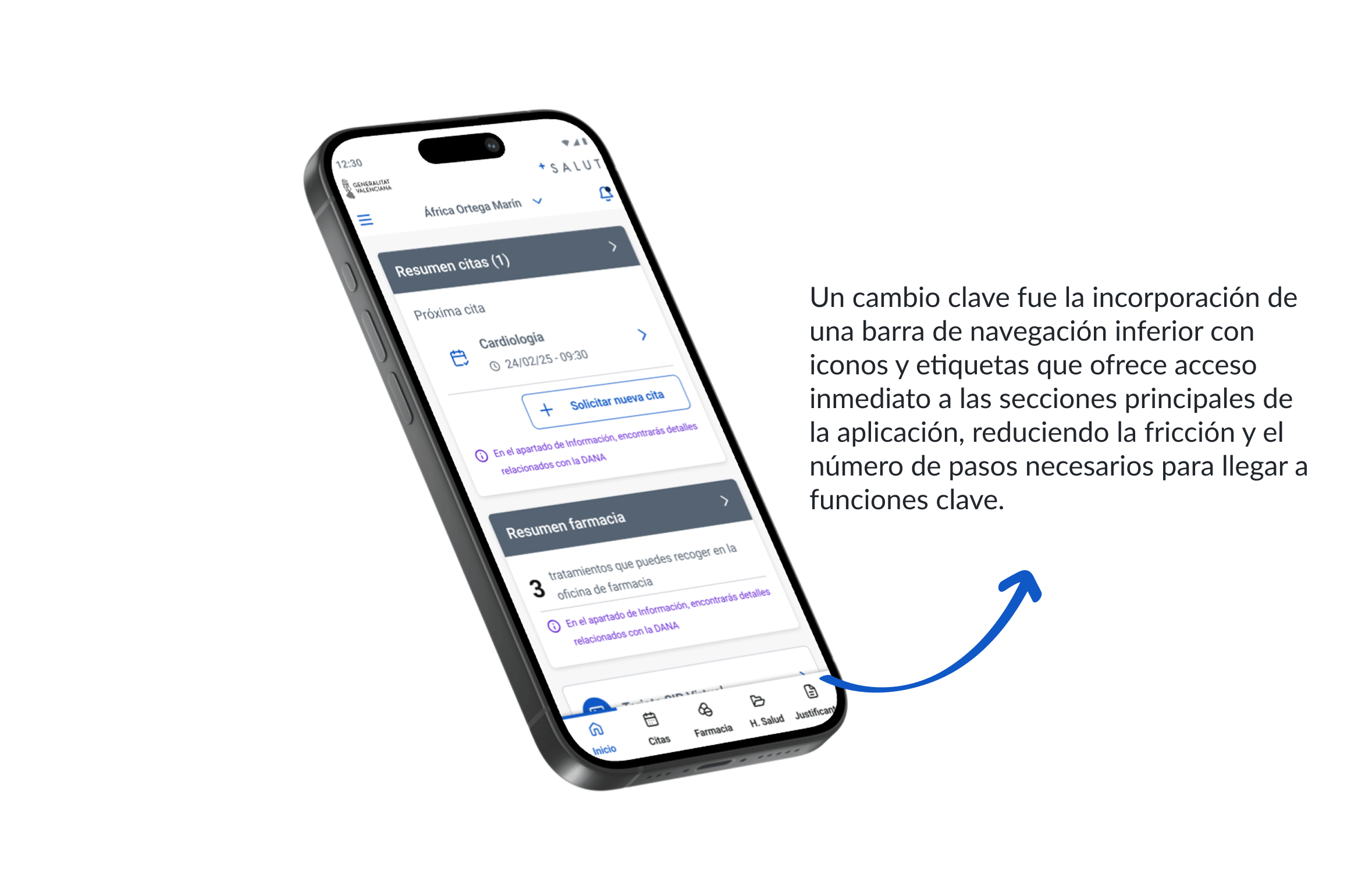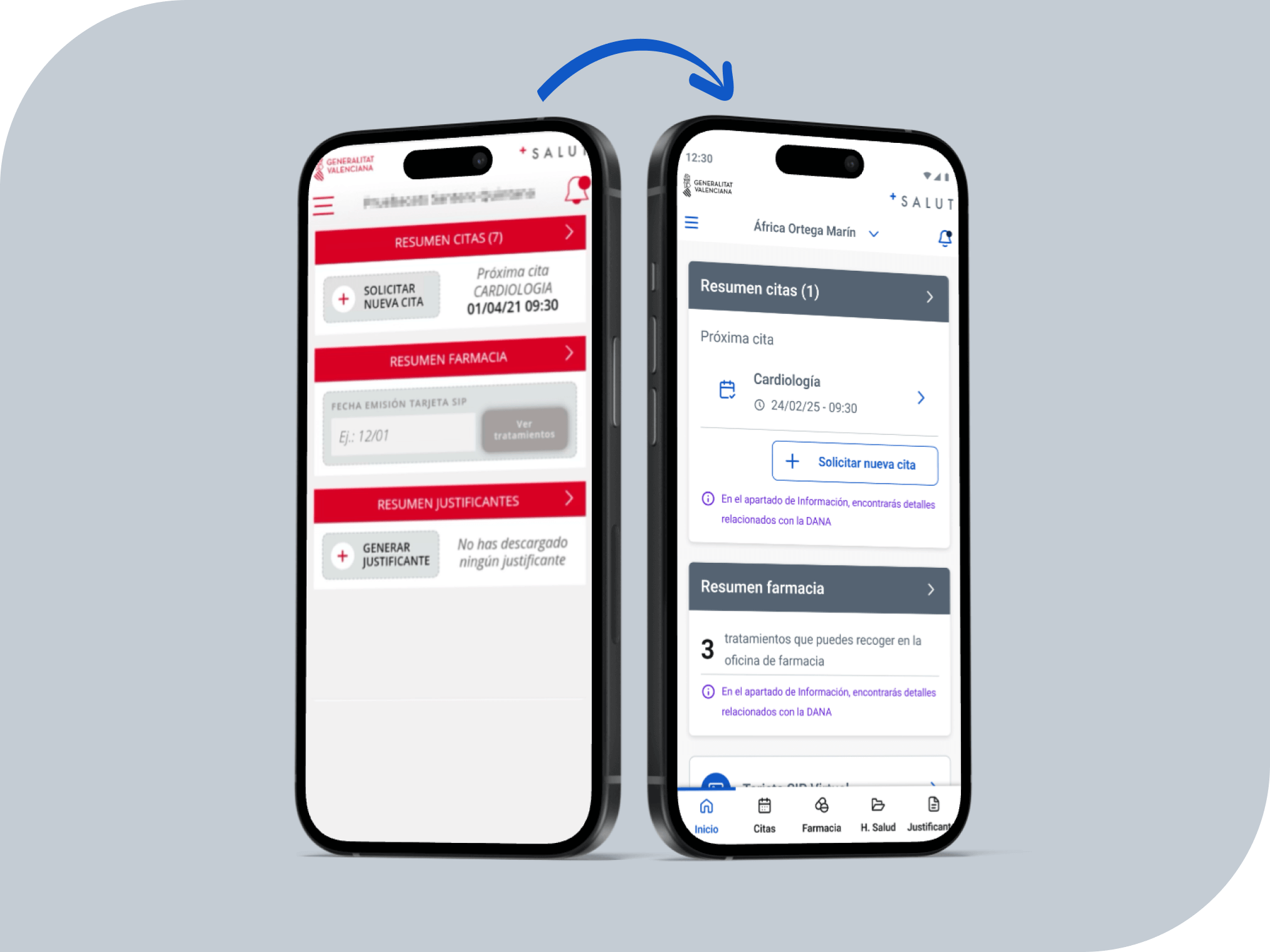 El proyecto de rediseño de la aplicación GVA +SALUT surgió con el objetivo de modernizar su interfaz visual y alinearla a estándares actuales de diseño digital. Mi participación se centró exclusivamente en la parte de diseño UI, ya que toda la investigación, definición de flujos y decisiones de experiencia de usuario fueron desarrolladas previamente por el cliente.
