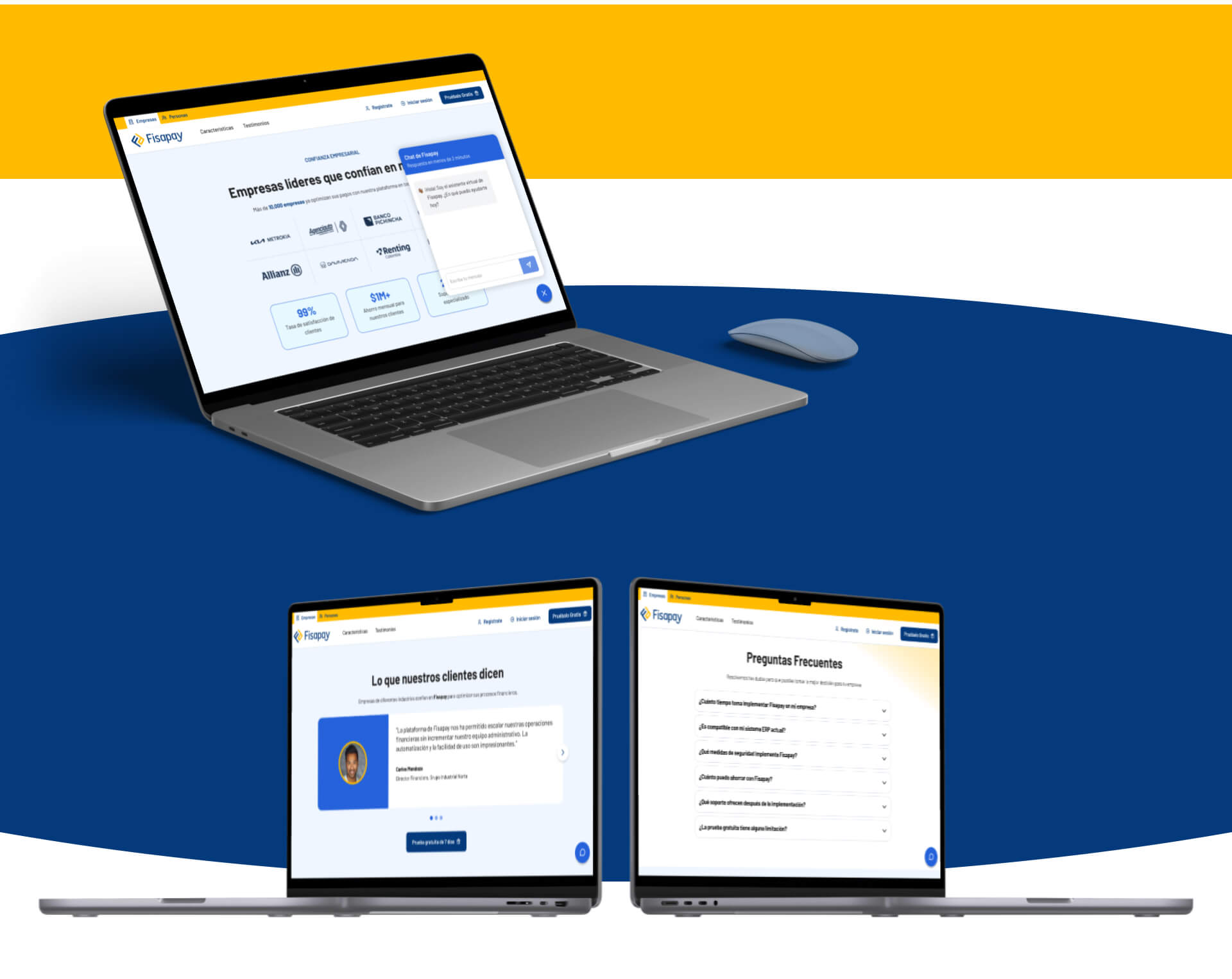 Fisapay, plataforma que automatiza pagos a proveedores y comisiones, enfrentaba baja conversión de leads a través de su sitio web. El reto era rediseñar su landing page para mejorar la captación de clientes potenciales en el sector B2B mediante una nueva estrategia UX/UI que simplificara el flujo, redujera la fricción y generara mayor confianza en usuarios empresariales.