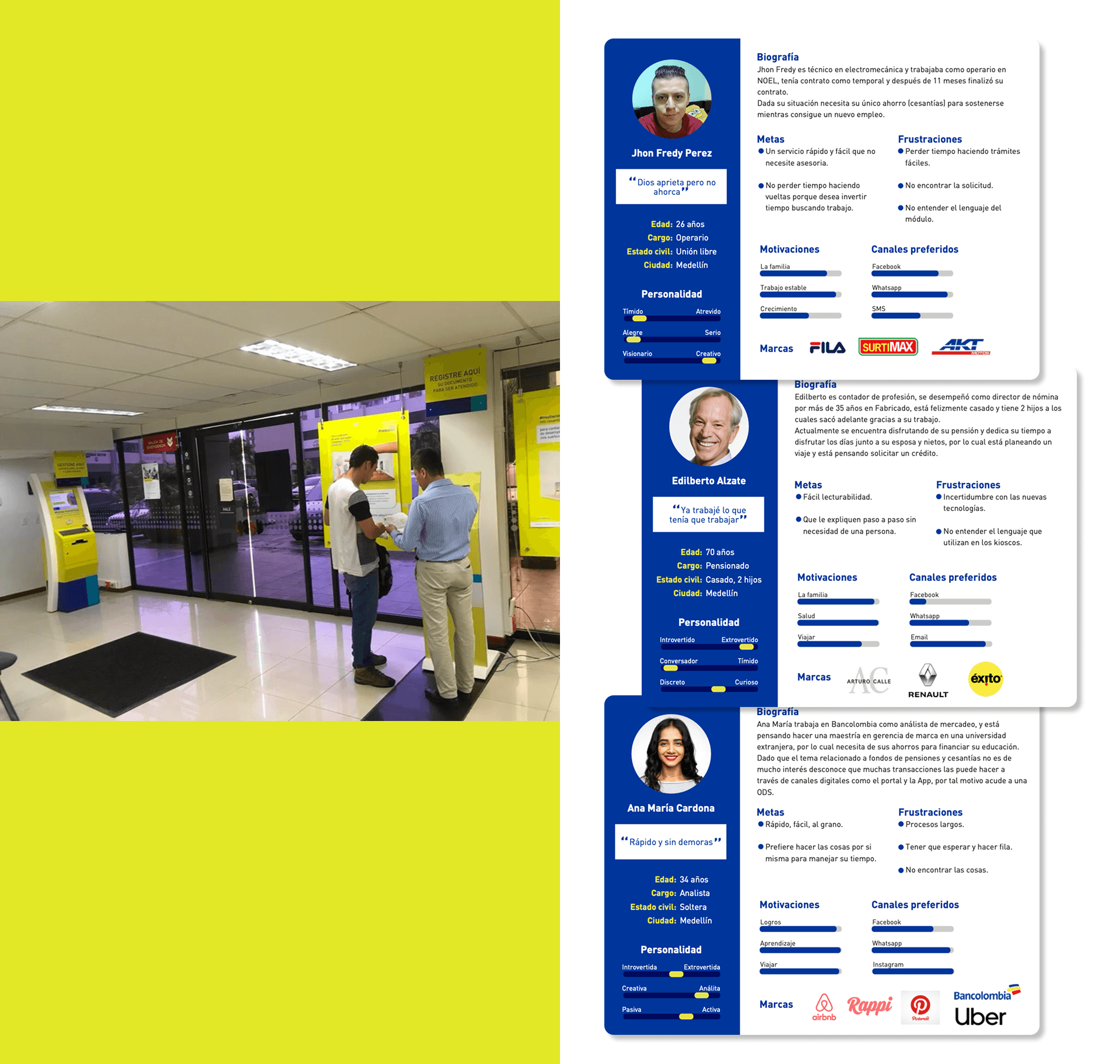 El problema era evidente, pero la solución no estaba tan clara. Para entender realmente qué estaba fallando, nos sumergimos en la experiencia de los usuarios. Observamos cómo interactuaban con los kioscos en tiempo real, tomamos notas de sus dificultades y les preguntamos directamente qué esperaban de la plataforma.