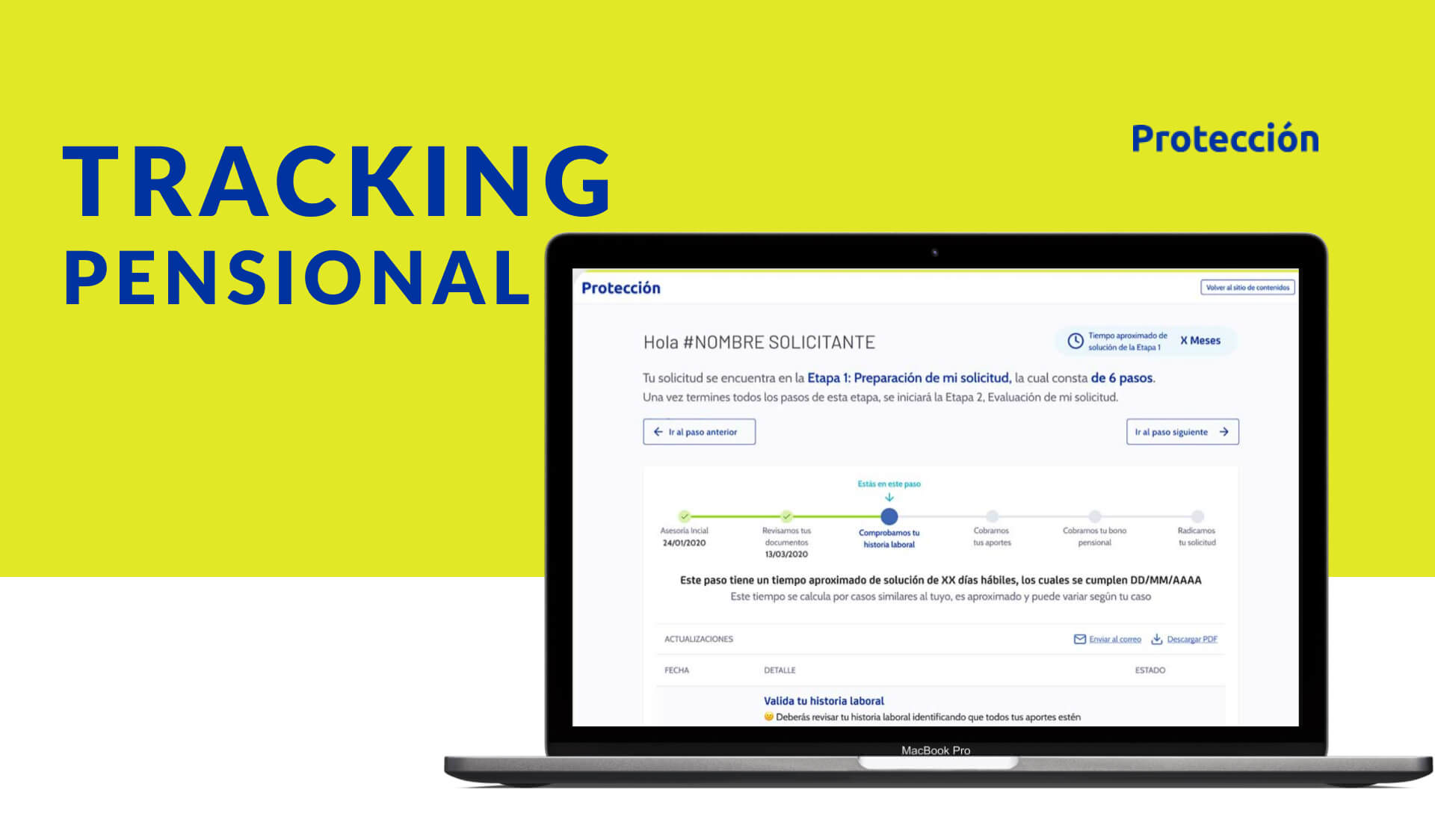 Diseño y construcción de una nueva aplicación digital para hacer segumiento al proceso de solicitud de pensión que viven los clientes de Protección.